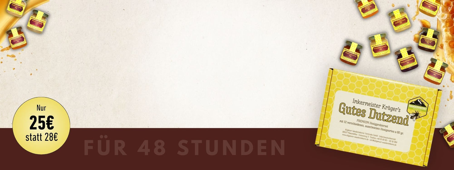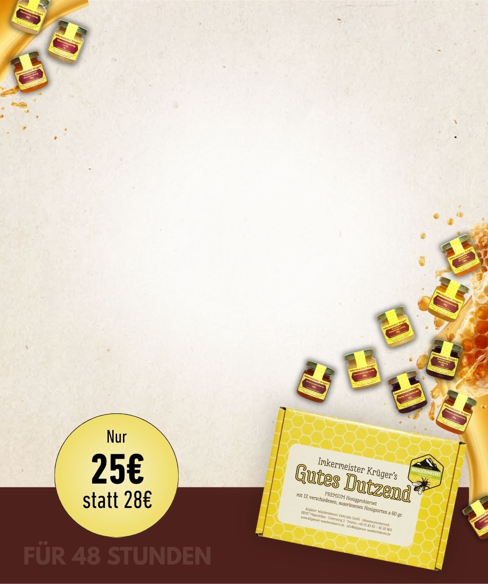 Entdecke die Vielfalt unserer Honigsorten mit dem einzigartigen GUTEN DUTZEND – unserem Honig-Probierset mit 12 verschiedenen Honigsorten zu je 60 Gramm. Erlebe die ganze Welt des Honigs in einem Set.