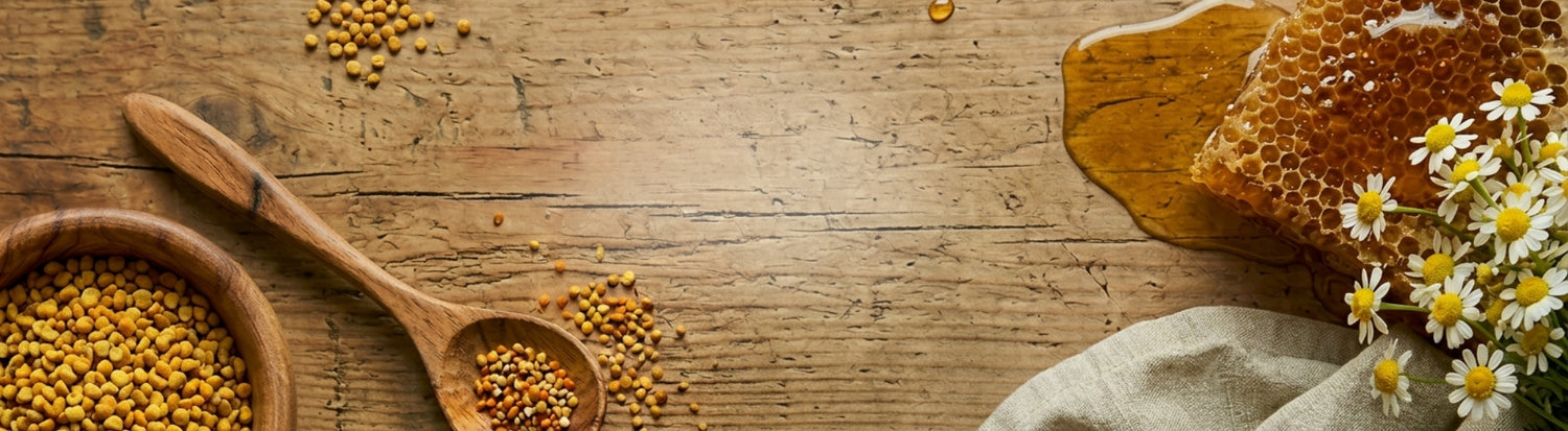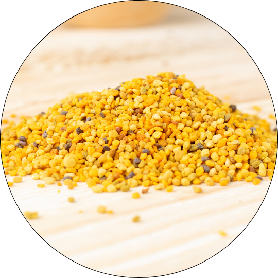 Bienenproduktmischung aus Wildblütenpollen, Gelee Royal (Royale), Propolisextrakt sowie Honig. Unsere beiden HERCULES-Varianten enthalten zusätzlich Schwarzkümmelöl und Koreanischen Ginseng.