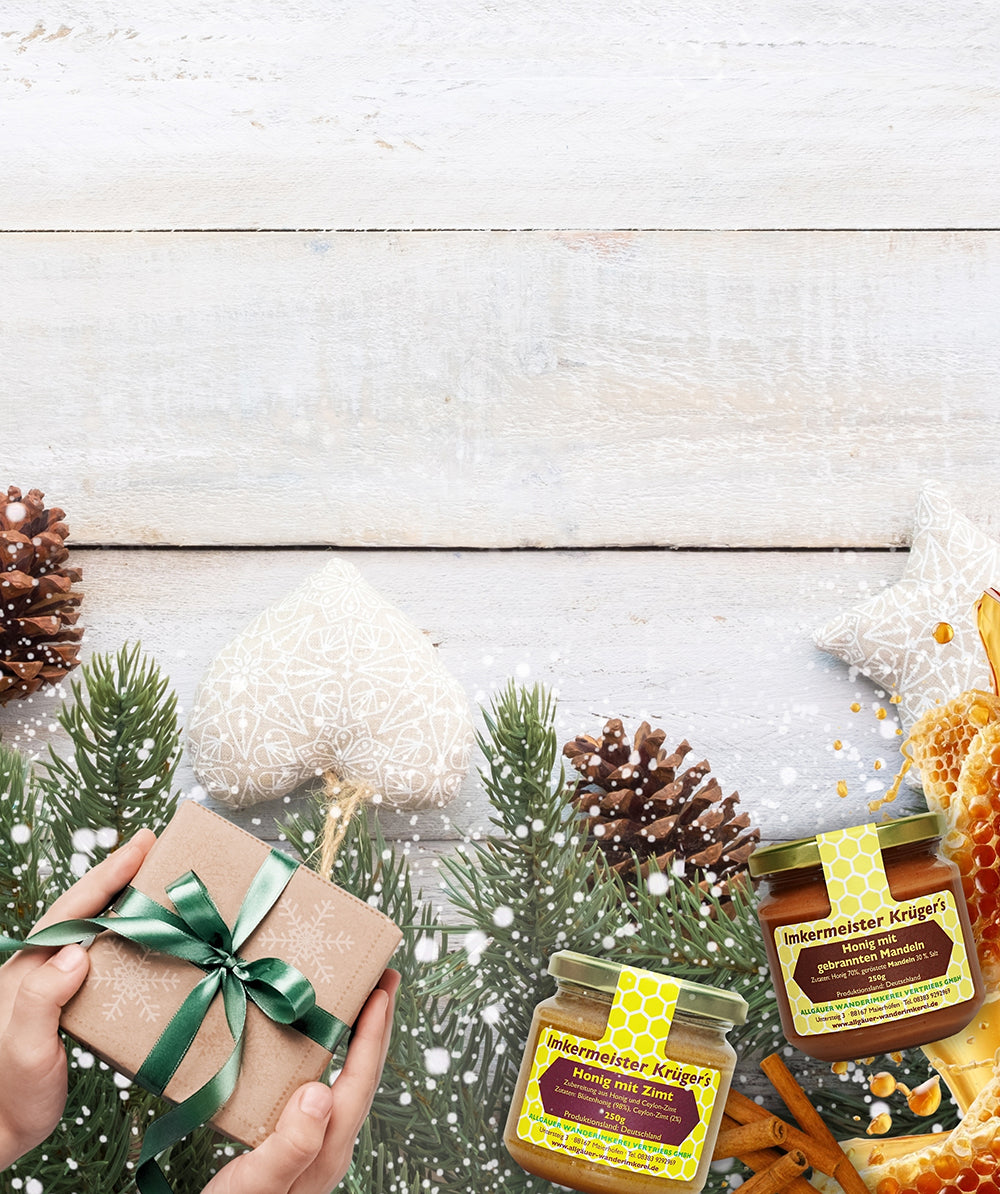 Honig küsst Mandel: Entdecke unsere Winter-Edition – feinster deutscher Frühjahrsblütenhonig vereint mit karamellisierten Mandeln. Nur für kurze Zeit.