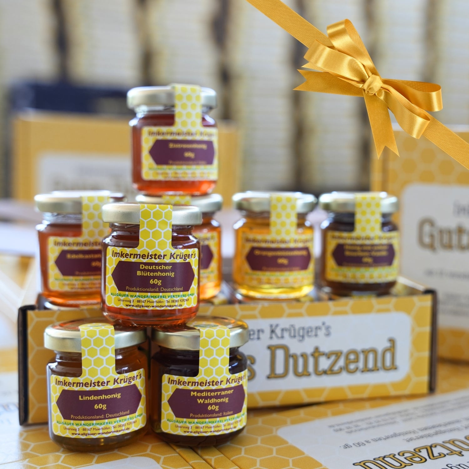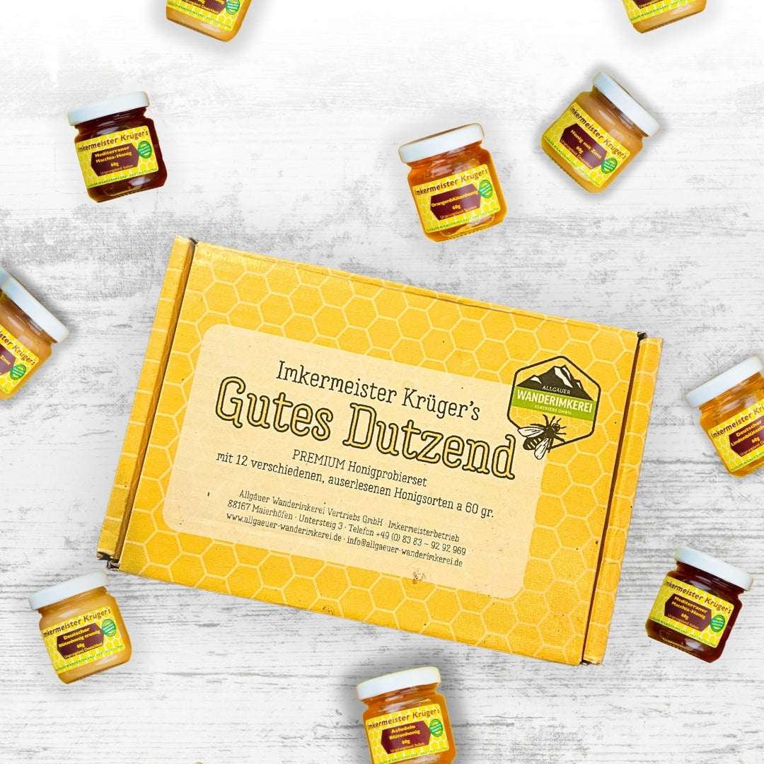 Die Zusammenstellung der Honigsorten erfolgt durch uns – so können wir stets die frischesten und spannendsten Sorten der Saison anbieten. Eine individuelle Auswahl ist im Guten Dutzend nicht möglich.