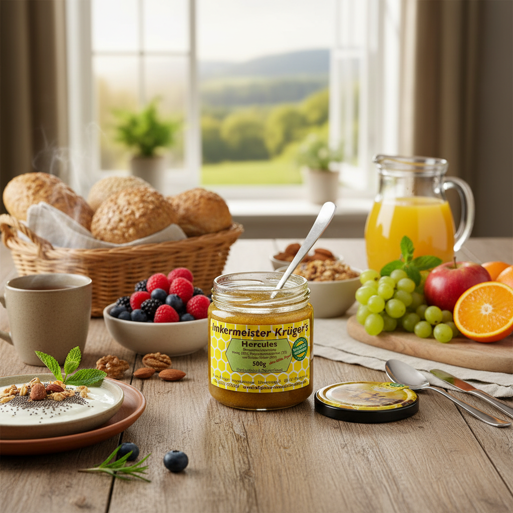 HERCULES Sport ist weit mehr als ein Honig – es handelt sich um eine sorgfältig abgestimmte Mischung aus ausgewählten Bienenprodukten und hochwertigem koreanischem Ginseng. Die Originalrezeptur wurde bereits vor über 26 Jahren von unserem Imkermeister Rainer Krüger entwickelt. Mit der Ergänzung durch Ginseng haben wir das Produkt weiter verbessert und bieten euch nun eine einzigartige Kombination, die unsere Kunden schätzen und täglich gerne verwenden.